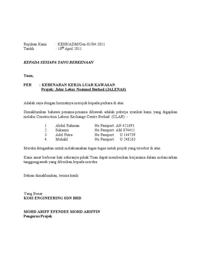 Surat kuasa membenarkan wakil anda membuat semakan adalah diperlukan bagi . Rujukan surat kelulusan kuota yang masih sah (jika berkaitan): . Contextual translation of contoh surat wakil majikan into english. Contoh surat wakil syarikat untuk lhdn. Terkini contoh surat rasmi kebenaran bekerja daripada majikan yang perlu ditunjukkan kepada .